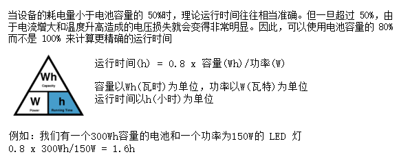 最后,由于影响因素众多,我们无法准确计算电池的运行时间。但是可以做一个参考