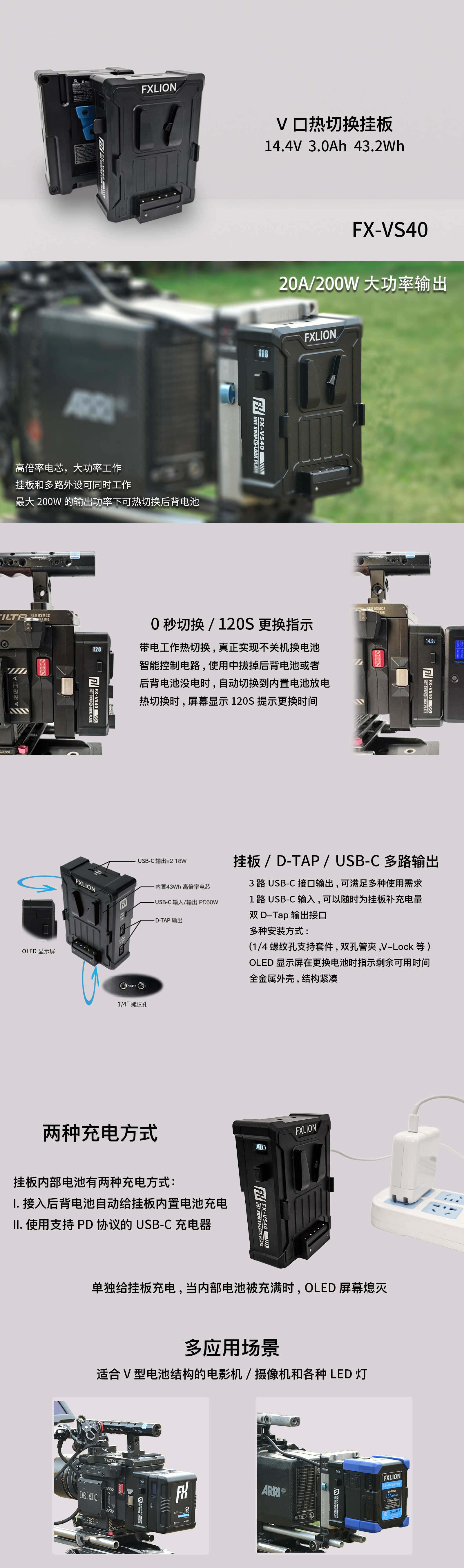 • 挂板内部电池可以提供200W功率输出,保障各应用场景下不间断供电需求