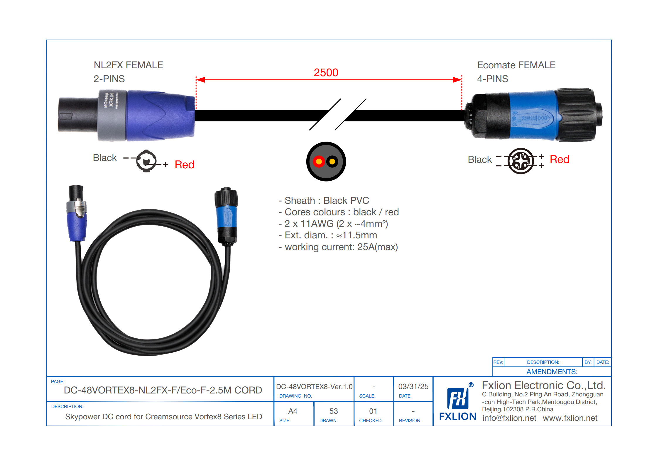 一端都是Neutrik NL2FX公头,一端是Ecomate 4孔母头