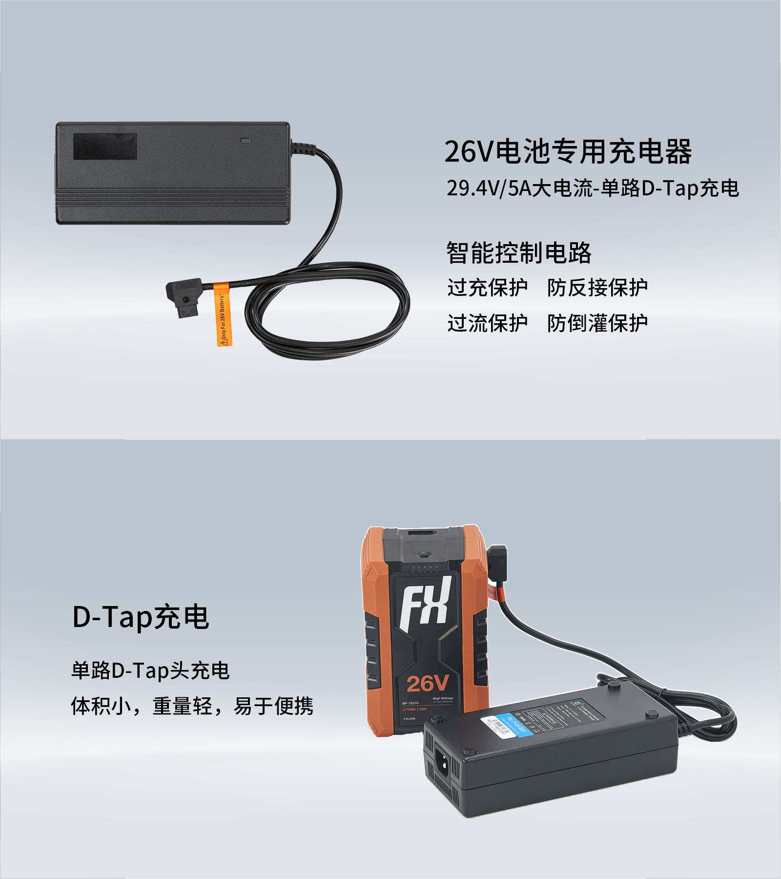 单路D-Tap充电,26V电池专用充电器