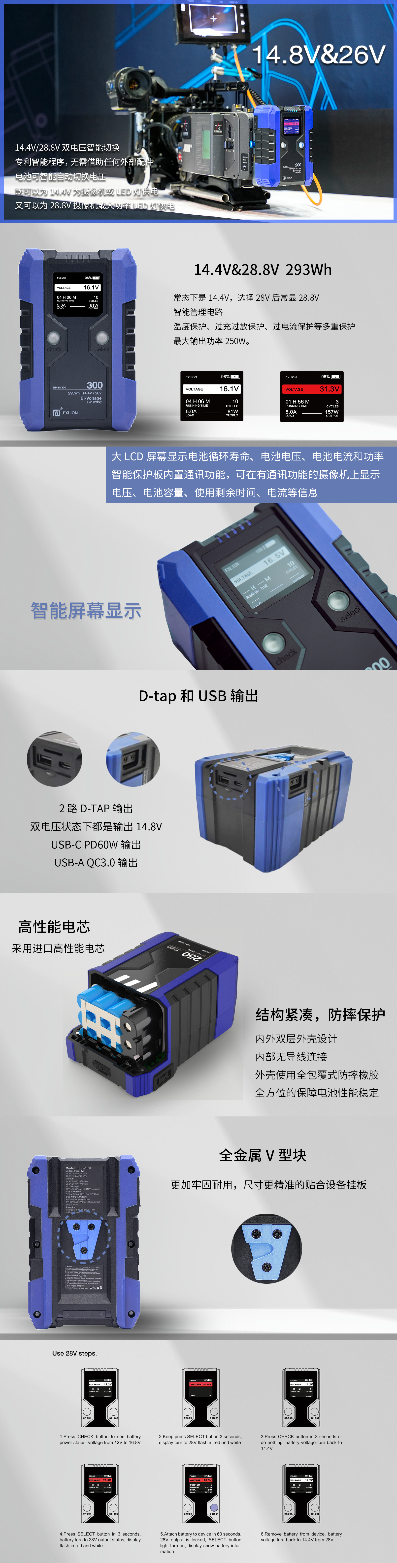 - 智能保护板内置通讯功能,匹配SONY/RED摄像机读取电池数据
