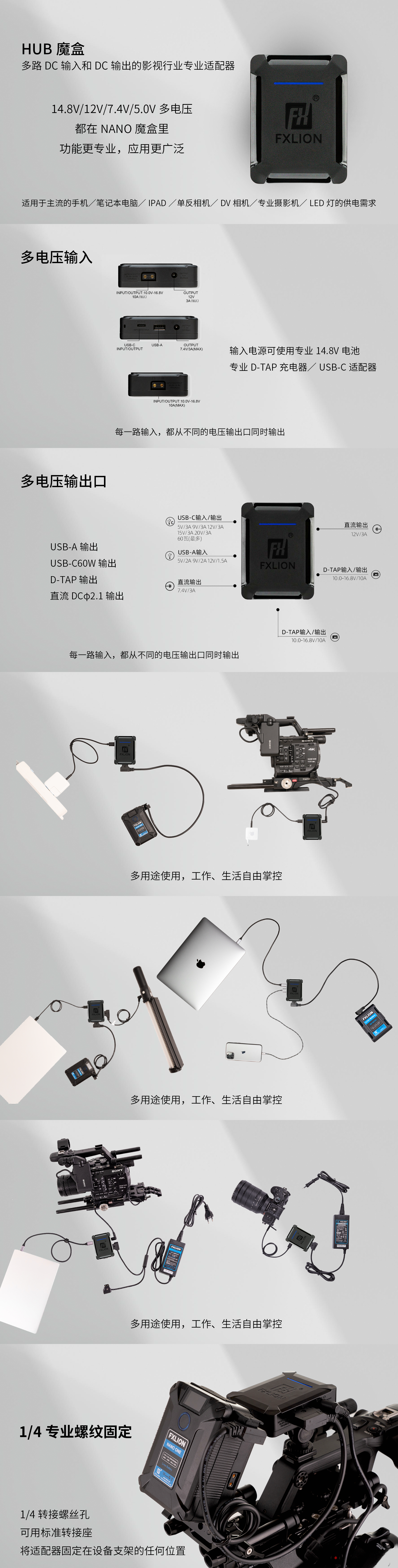 适用于主流的手机/笔记本电脑/IPAD/单反相机/DV相机/专业摄影机/LED灯的供电需求