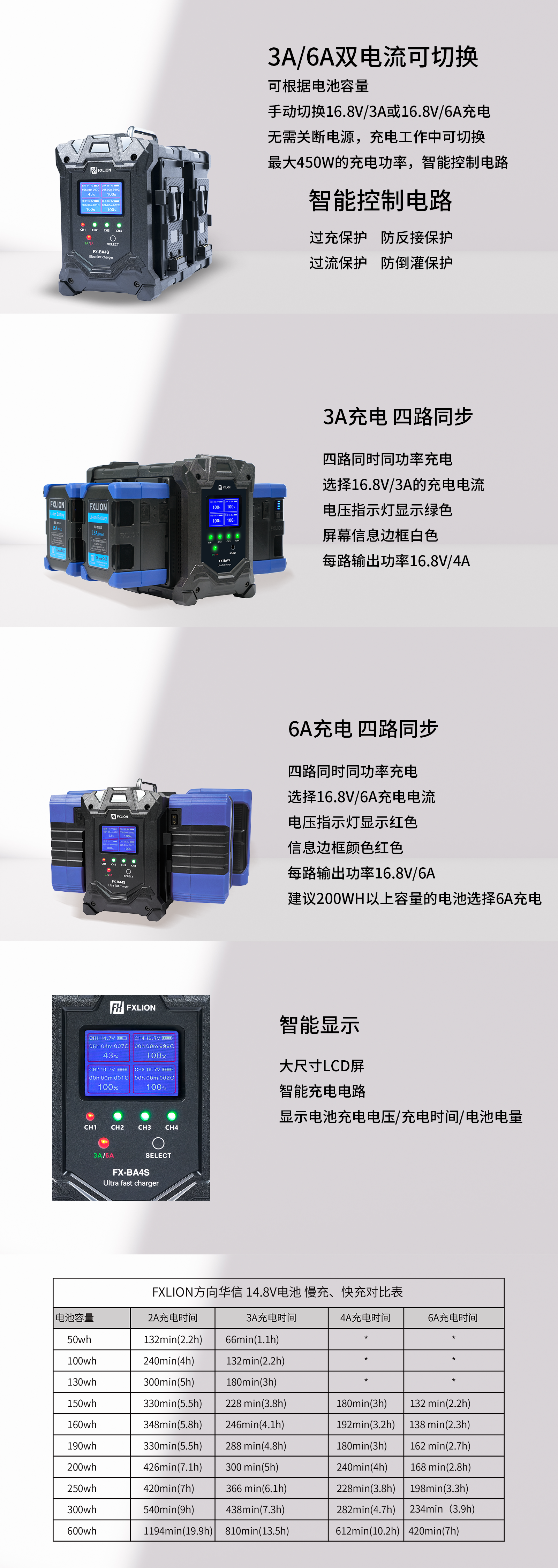 充电输出:16.8V/6.0A×4