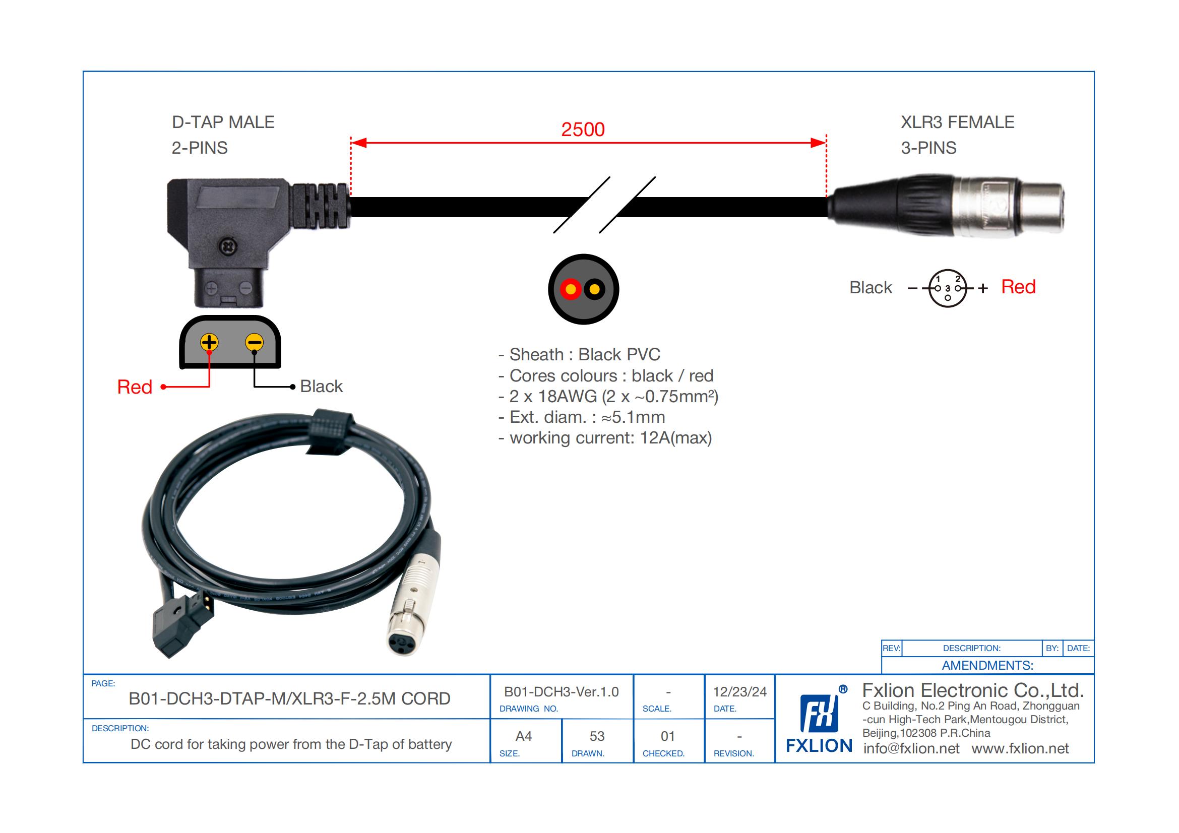适用于电压输入是XLR3针公头的LED灯,通过B01-DCH3可以从电池的D-tap口取电